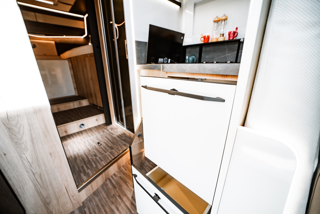 Smart HD TV s 23,8 palcovou Full HD obrazovkou a vestavěným HD satelitním dekodérem. Disponuje digitálními tunery DVB-T/T2 i DVB-S/S2 a mobilní platformou Avtex | VIDAA. Podporuje Wi-Fi 2,4 a 5 GHz, Bluetooth a nabízí přístup ke streamovacím službám jako Netflix, Amazon Prime, Disney+ a YouTube. Umožňuje nahrávání na externí USB nebo HDD, má hlasové ovládání a moderní bezrámový design. Napájení 12/24V DC a 230V AC.