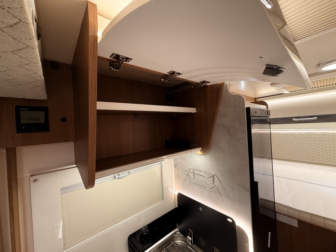 Montáž detektoru plynu THITRONIK zahrnuje profesionální instalaci citlivého senzoru s hlasovým a vizuálním alarmem pro detekci úniků propanu a butanu v karavanech. Připojení k palubní síti 12/24 V a funkční test jsou součástí montáže.
