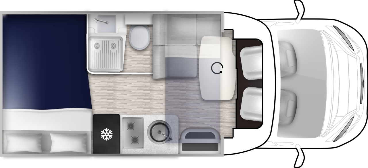 Zadní dvoulůžko: 216 cm x 130 cm